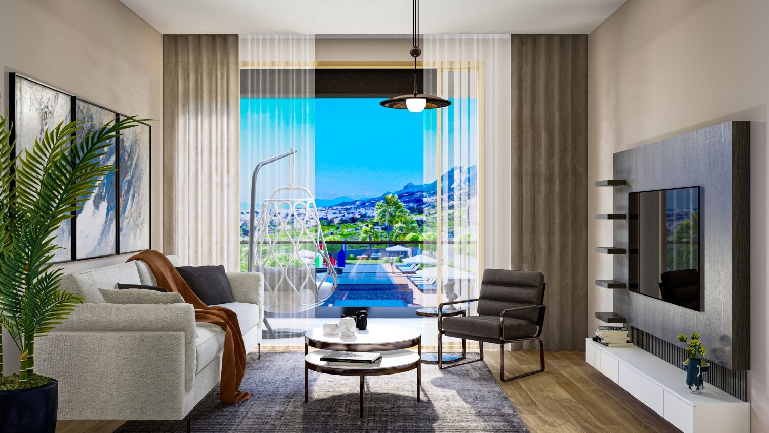 Spectra vereint das Beste aus zwei Welten: Ruhe und Entspannung in einer grünen Oase, kombiniert mit schneller Anbindung an die wichtigsten Orte der Insel. So kannst du jederzeit spontan ans Meer, zum Dinner in Kyrenia oder einfach auf der eigenen Terrasse entspannen.